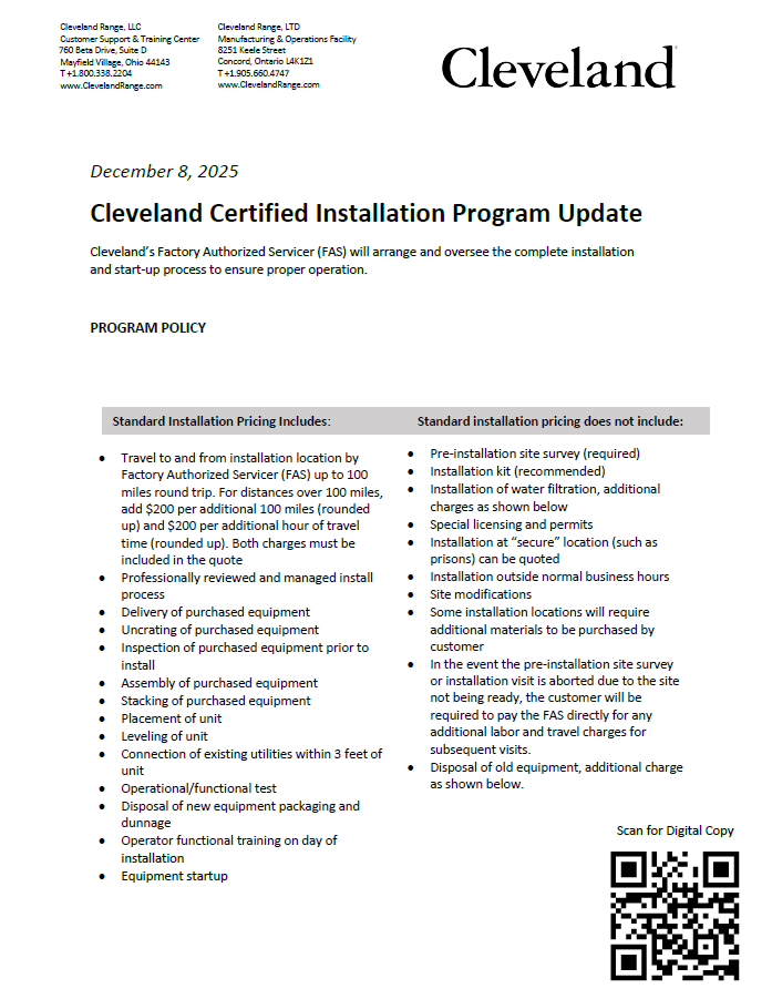 Cleveland Range Installation Program