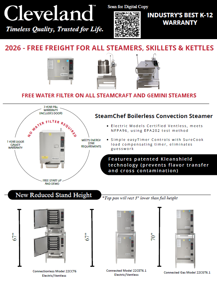 New EasyTimer Controls for Cleveland Convection Steamers